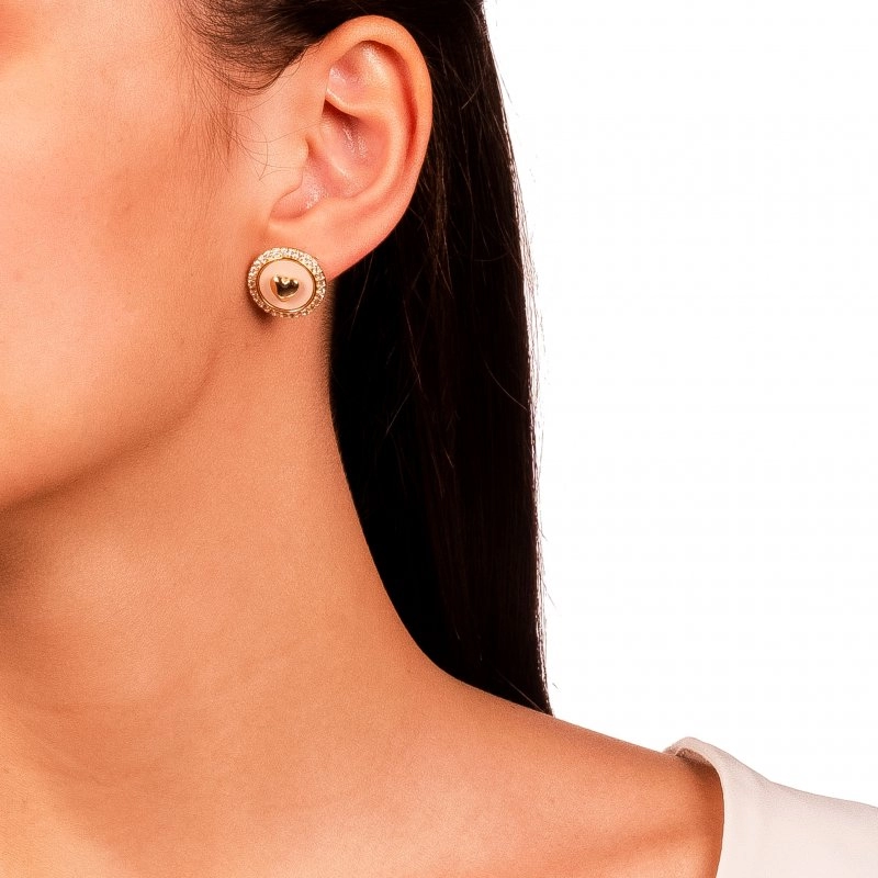 Semijoia Gazin- Brinco Coração Esmaltado com Micro Zircônias Confeccionado em Banho de Ouro Amarelo de 18k.