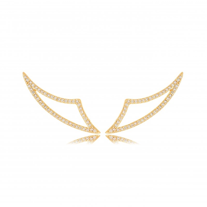 Semijoia Gazin- Brinco Vazado Cravejado Confeccionado em Banho de Ouro Amarelo de 18k.