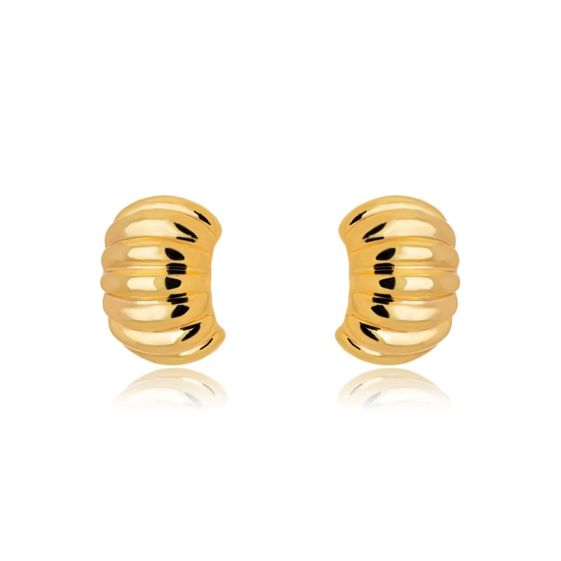 Semijoia Gazin- Brinco Detalhado Croissant Confeccionado em Banho de Ouro Amarelo de 18K e Ródio Branco.