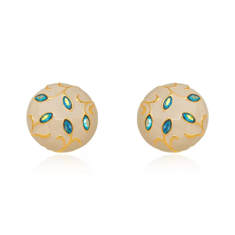 Semijoia Gazin - Brinco Esmaltado Folhas Cristal Confeccionado em Banho de Ouro Amarelo 18K.