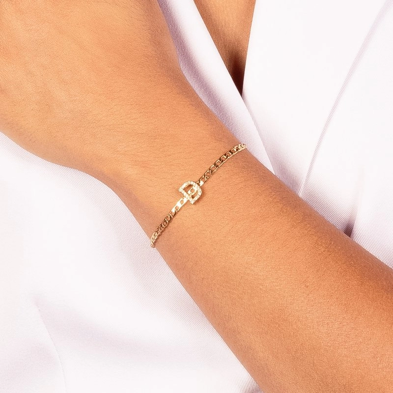 Semijoia Gazin- Pulseira Elos Letra D Confeccionada em Banho de Ouro Amarelo de 18K.