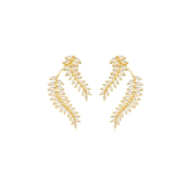 Semijoia Gazin- Brinco Ear Jacket Ramos Cristais Confeccionado em Banho de Ouro Amarelo de 18k.