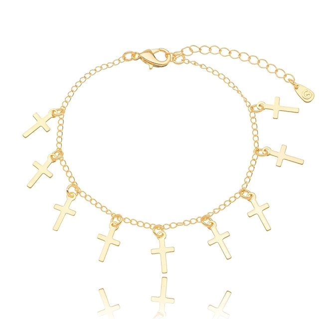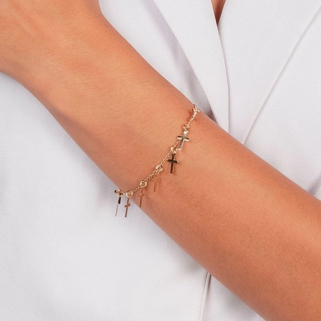 Semijoia Gazin- Pulseira Cruz Penduradas Lisas Confeccionada em Banho de Ouro Amarelo 18k.