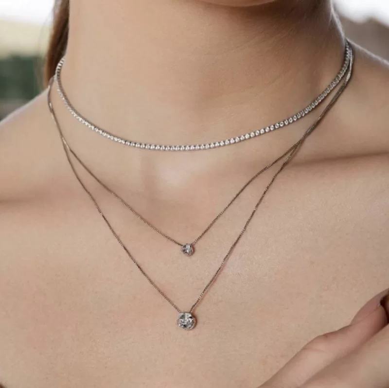 Colar Duplo Ponto de Luz Confeccionado em Banho de Ouro Amarelo 18k ou Ródio.