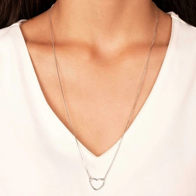 Semijoia Gazin- Escapulário Coração Vazado Confeccionado em Banho de Ródio Branco.