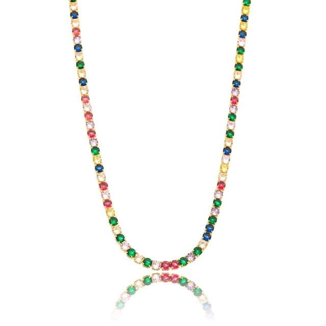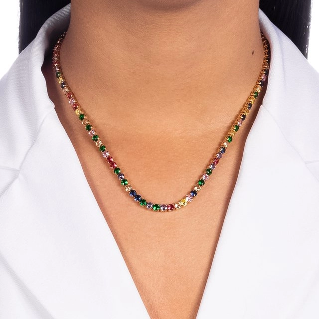 Semijoia Gazin- Colar Gazin Riviera Cravejado Color Confeccionado em Banho de Ouro Amarelo de 18K.