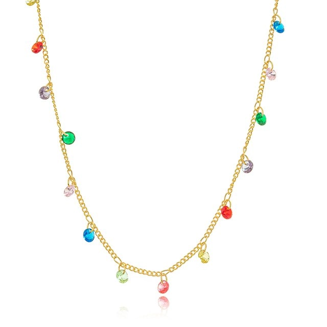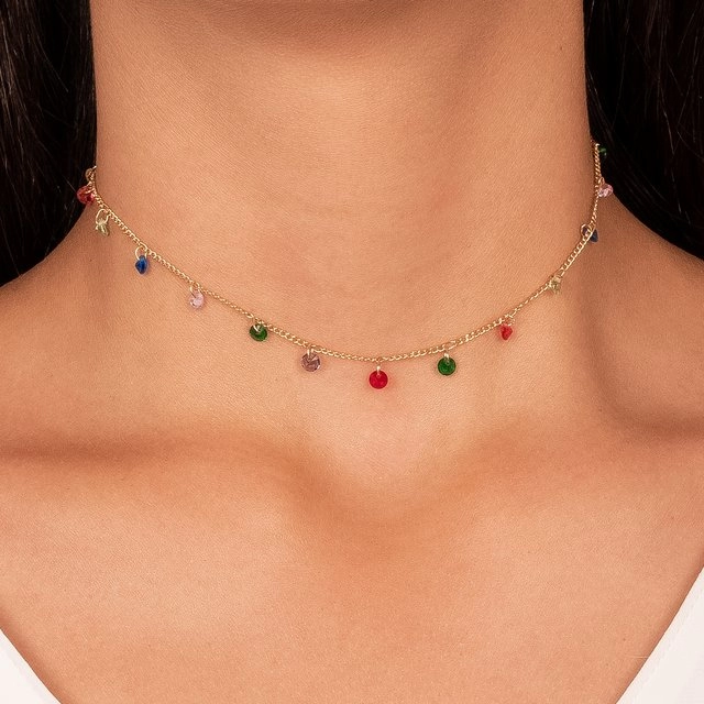 Semijoia Gazin- Choker Cristais Color Confeccionado em Banho de Ouro Amarelo 18K.