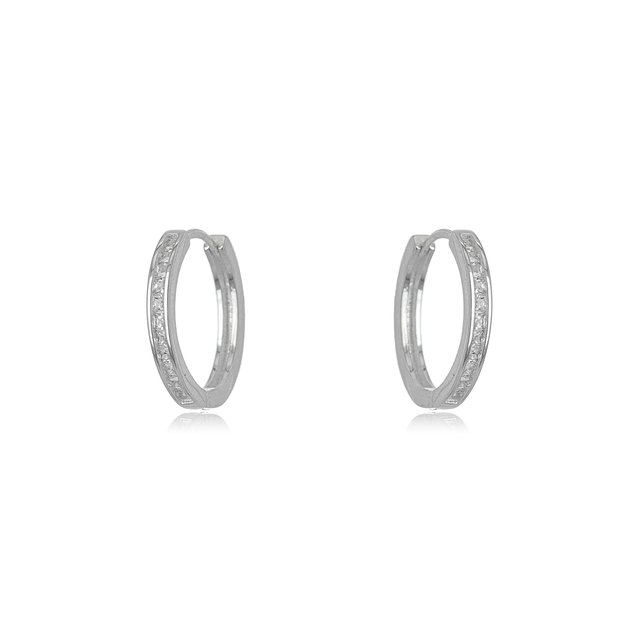 Joia- Brinco Argola Cravejada com Micro Zircônia Confeccionado em Prata 925.