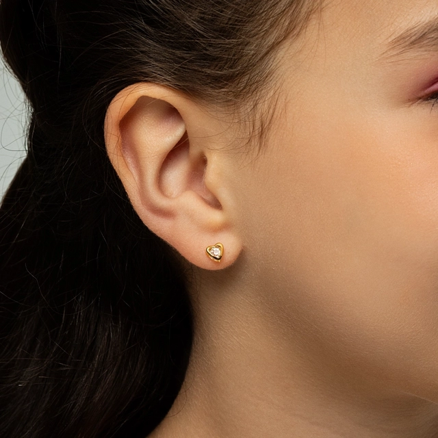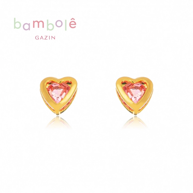 Semijoia Gazin- Brinco Infantil Coração Cristal Confeccionado em Banho de Ouro Amarelo de 18K.