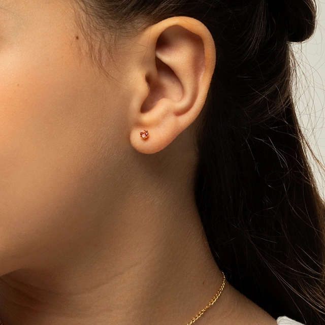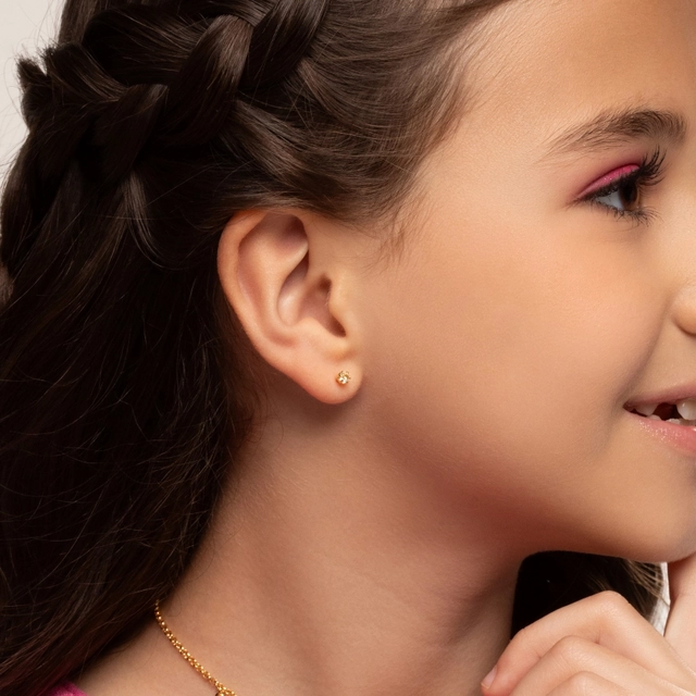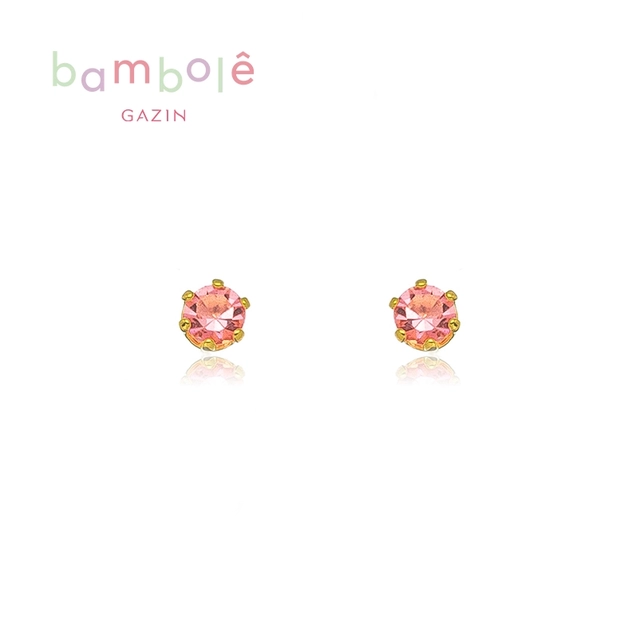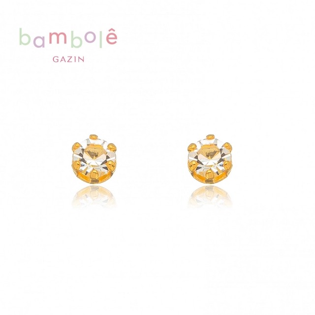 Semijoia Gazin- Brinco Infantil Ponto de Luz Cristal Confeccionado em Banho de Ouro Amarelo de 18K.