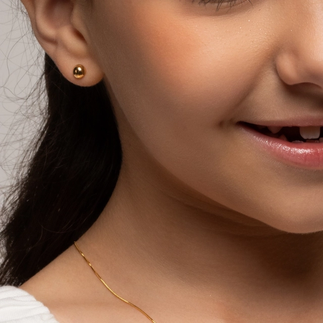 Semijoia Gazin- Brinco Infantil Meia Bola Confeccionado em Banho de Ouro Amarelo de 18K.
