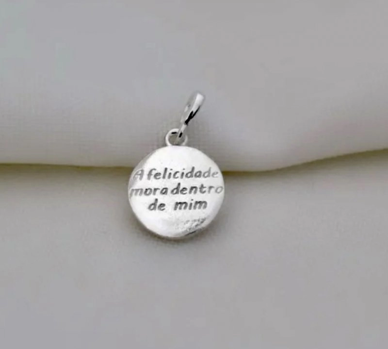 Joia Prata 925- Pingente "A Felicidade Mora Dentro de Mim" Confeccionado em Prata 925.