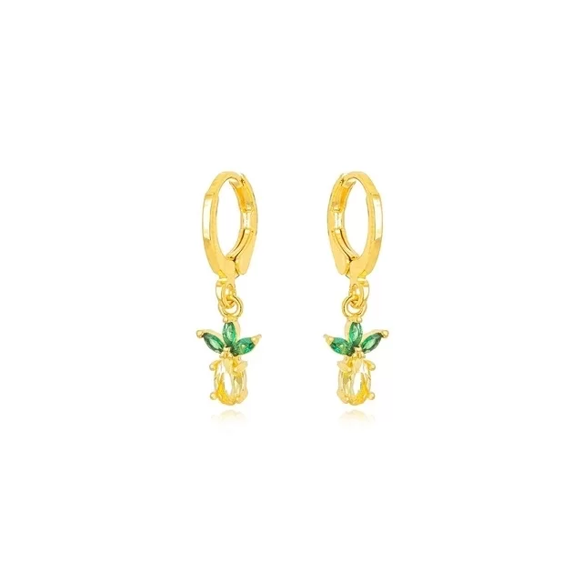 Semijoia Gazin- Brinco Argola Fruta Maçã Cristal Confeccionado em Banho de Ouro Amarelo de 18K.