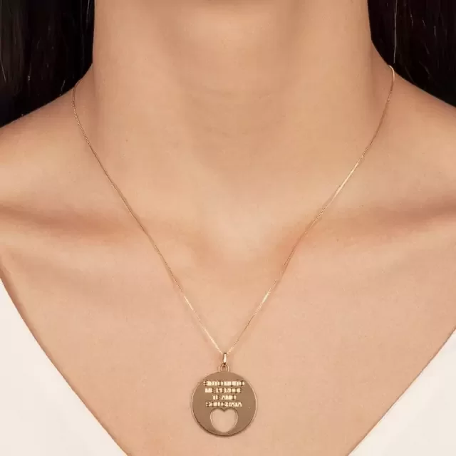 Semijoia Gazin- Colar Redondo Coração Frase Confeccionado em Banho de Ouro Amarelo 18K.