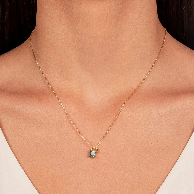 Semijoia Gazin- Pingente Quadrado Cristal Confeccionado em Banho de Ouro Amarelo de 18K.