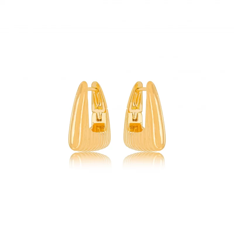 Semijoia Gazin- Brinco Argola Texturizada Confecionada em Banho de Ouro Amarelo de 18K.