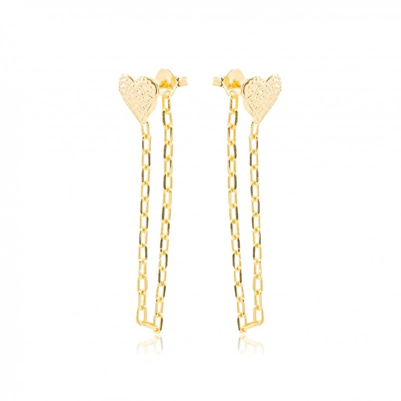 Semijoia Gazin- Brinco Ear Jacket Coração Corrente Confeccionado em Banho de Ouro Amarelo de 18k.
