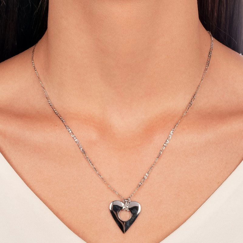 Semijoia Gazin - Colar com Pingente Coração Liso Confeccionado em Banho de Ródio.