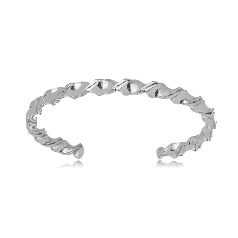 Semijoia Gazin - Bracelete Torcido Confeccionado em Banho de Ródio.
