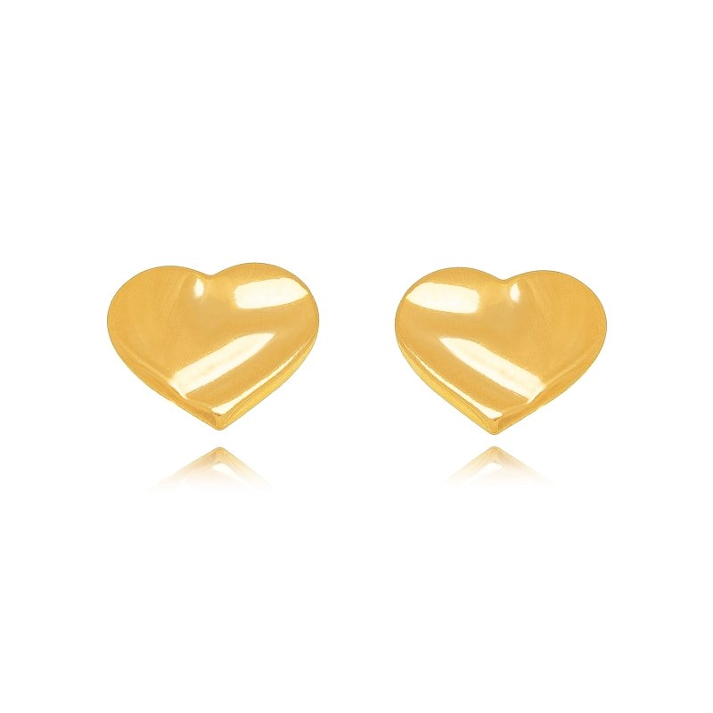 Semijoia Gazin- Brinco Coração Martelado Liso Confeccionado em Banho de Ouro Amarelo de 18k.