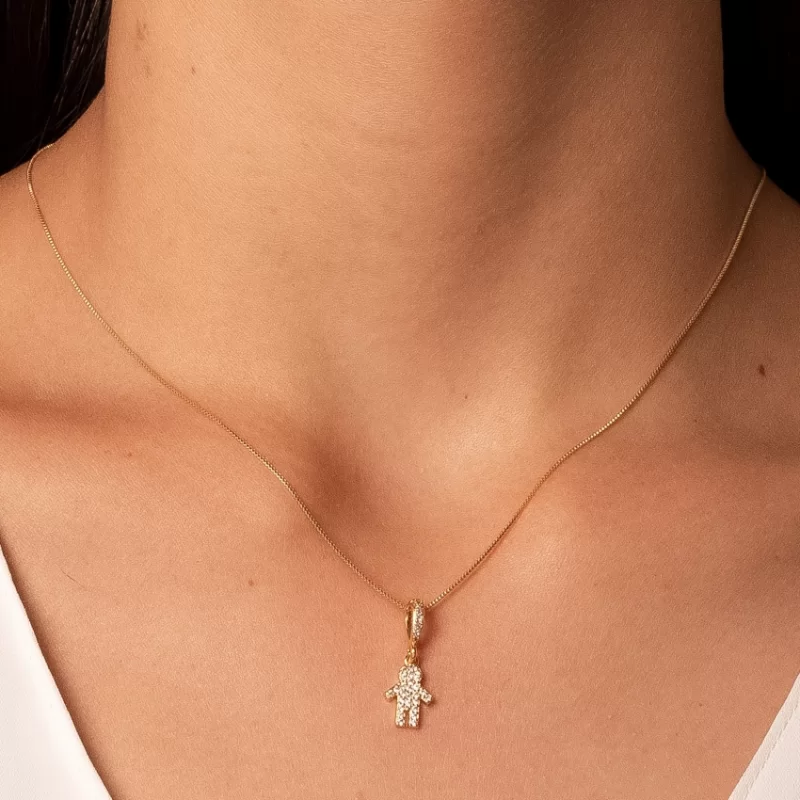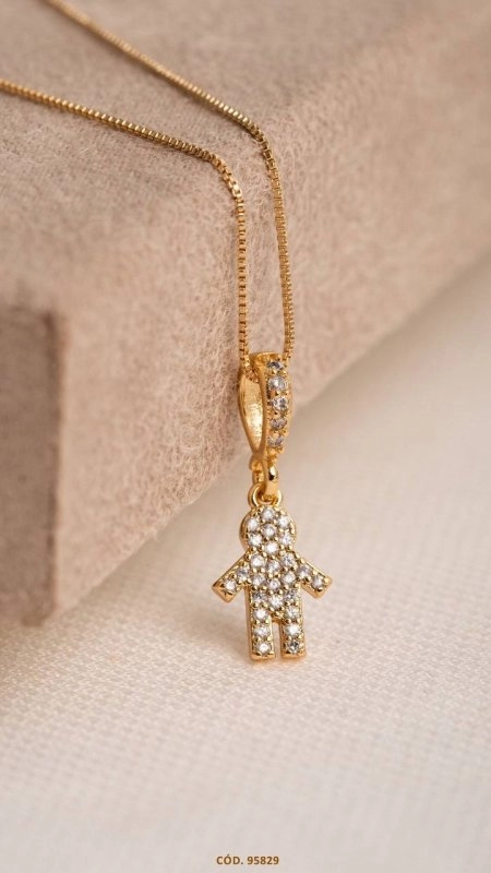 Colar Menino Cravejado Confeccionado em Banho de Ouro Amarelo de 18K.