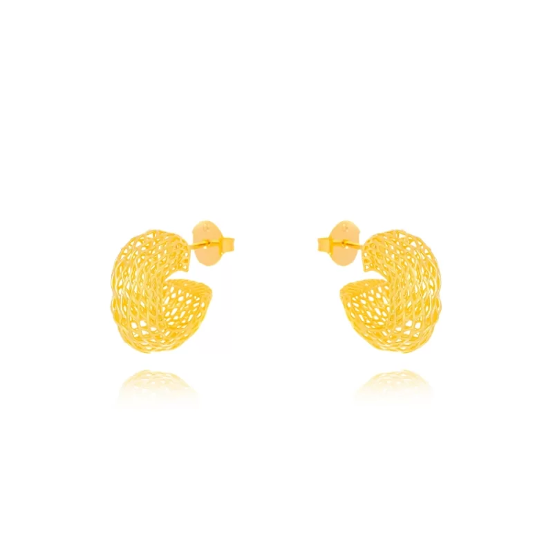 Brinco Argola Detalhada Lisa Confeccionado em Banho de Ouro Amarelo 18k.