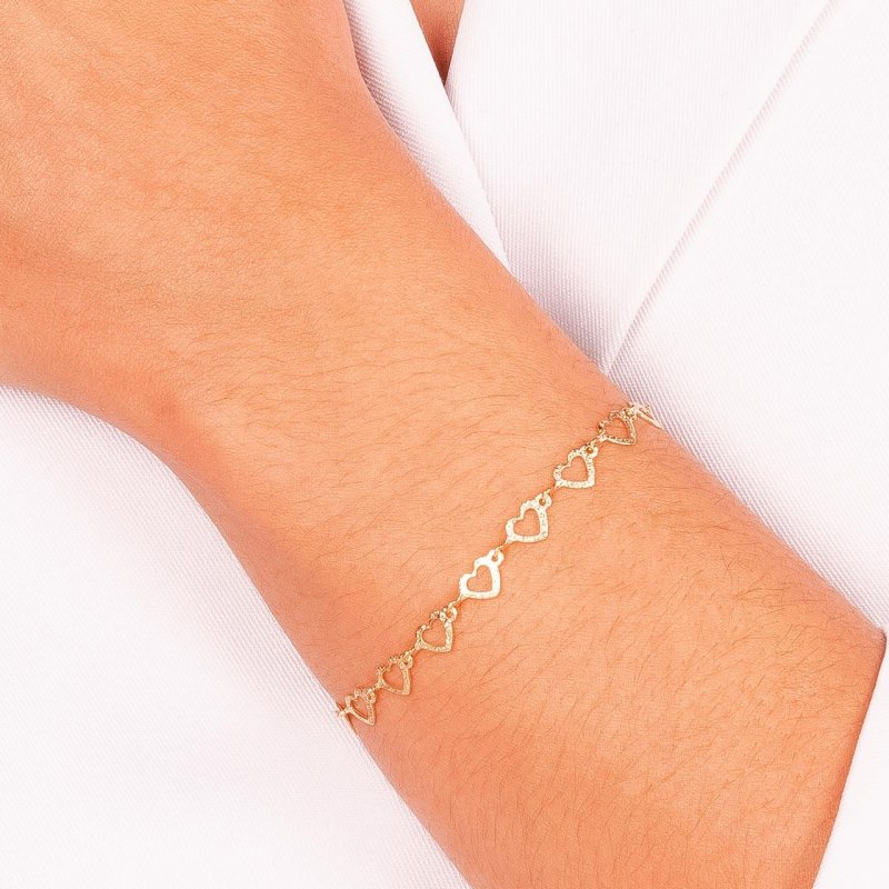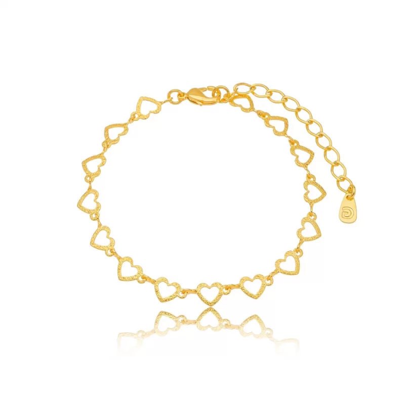 Pulseira Corações Vazados Confeccionada em Banho de Ouro Amarelo de 18k.