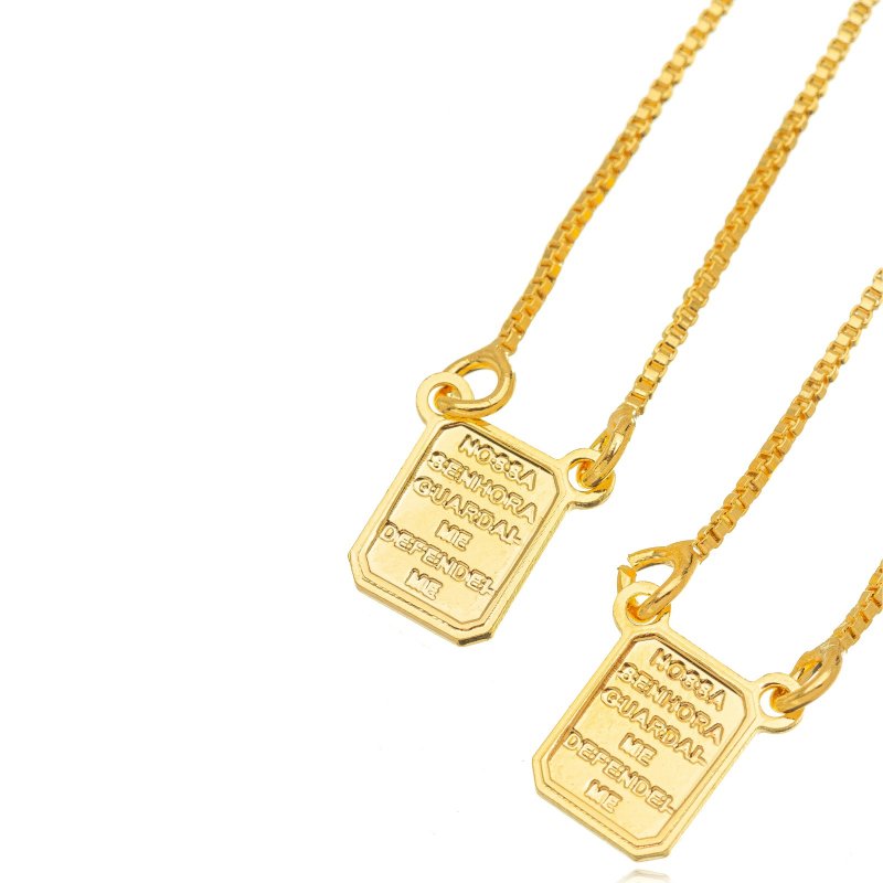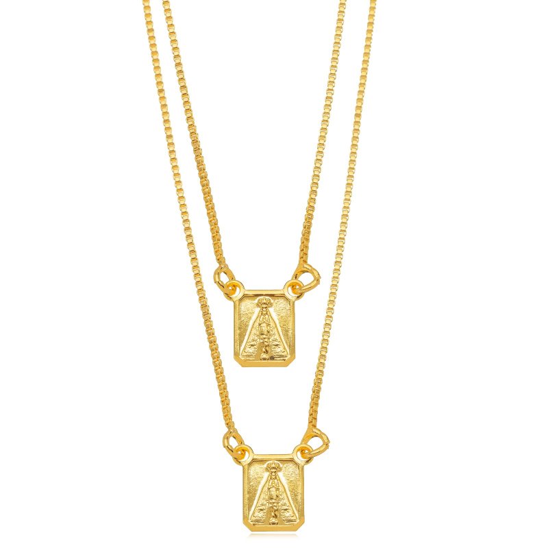 Colar Escapulário Nossa Senhora Confeccionado em Banho de Ouro Amarelo 18k.