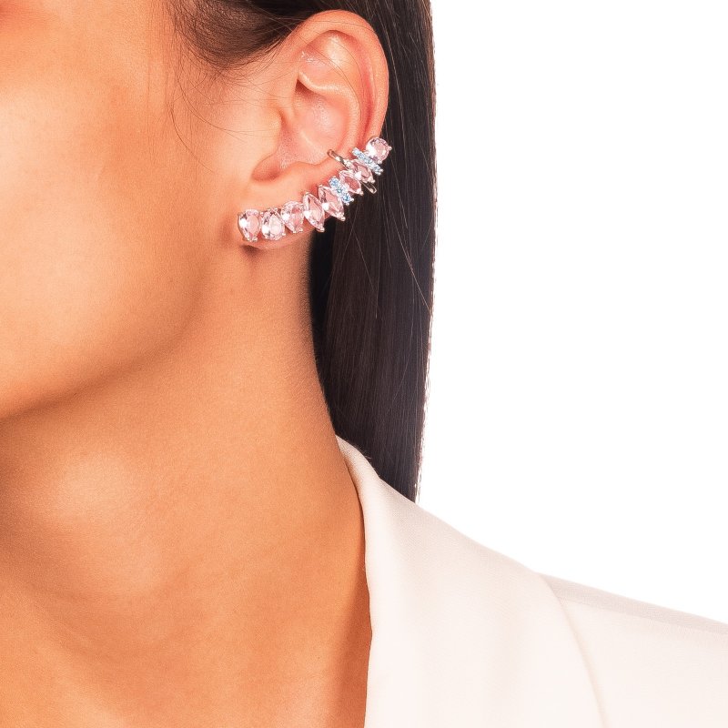 Brinco Ear Cuff Rosa com Cristal Turquesa Confeccionado em banho de Ouro Amarelo 18K.