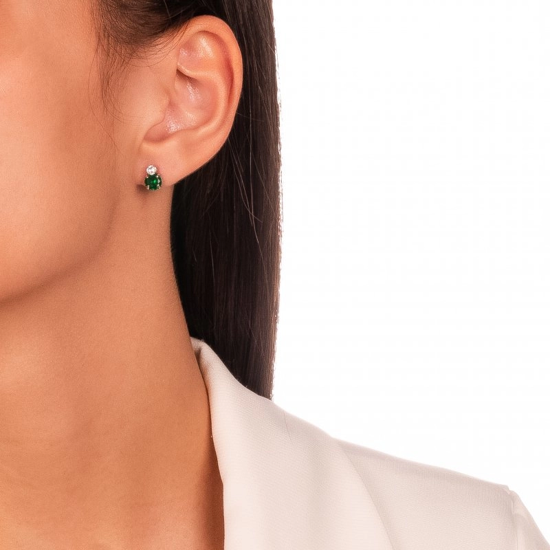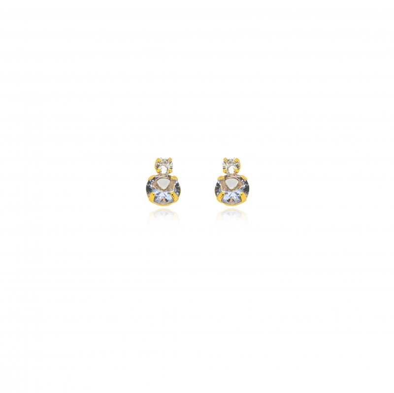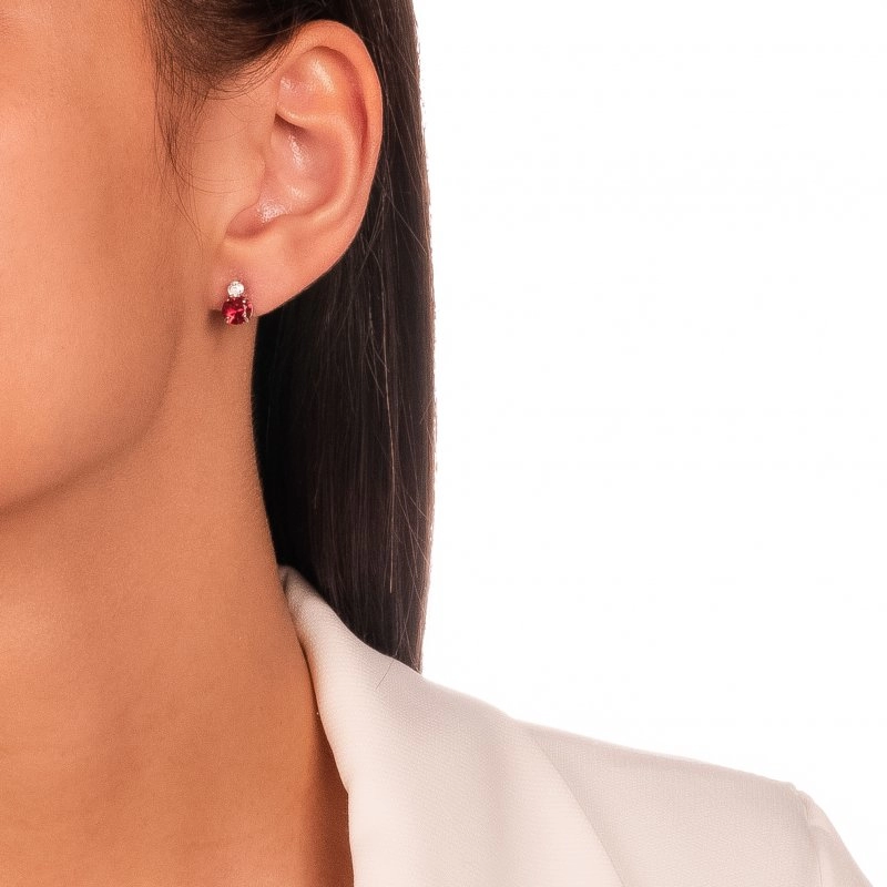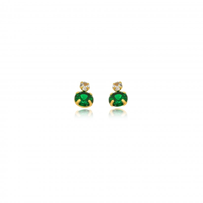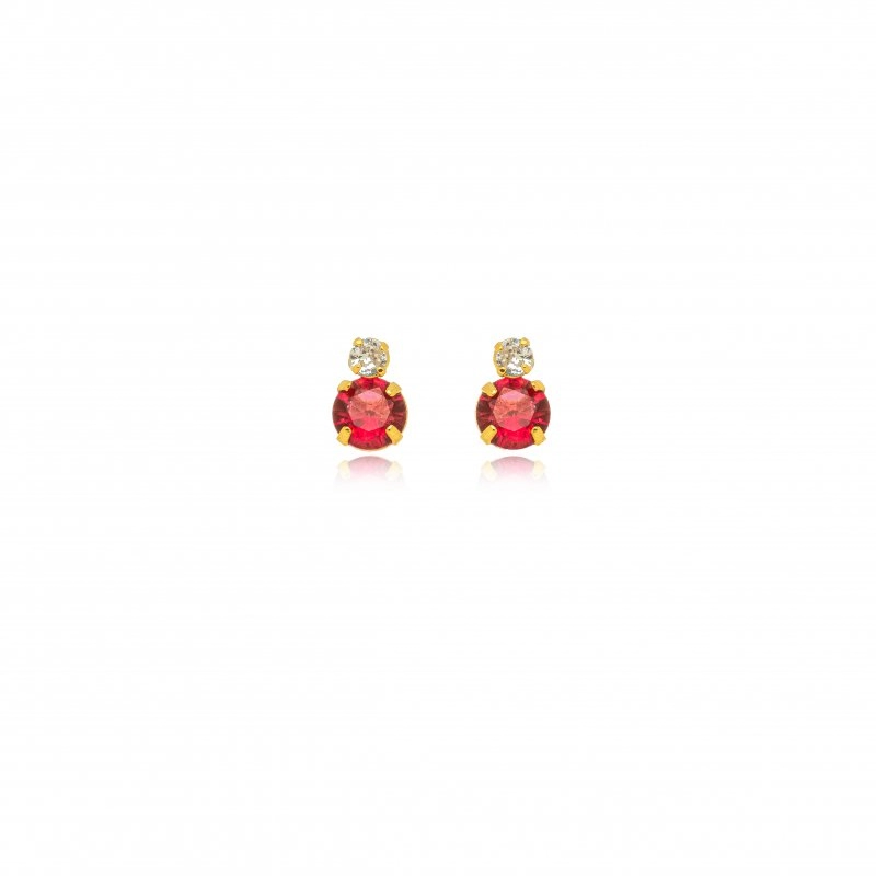 Semijoia Gazin- Brinco Duplo Ponto de Luz Cristal Rubi Confeccionado em Banho de Ouro Amarelo de 18k.