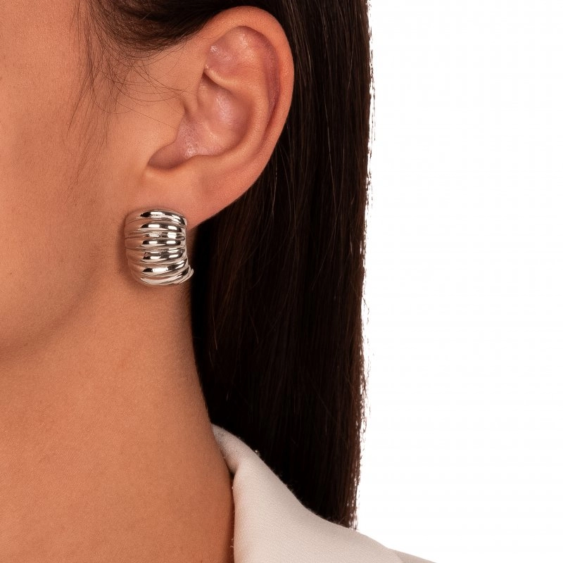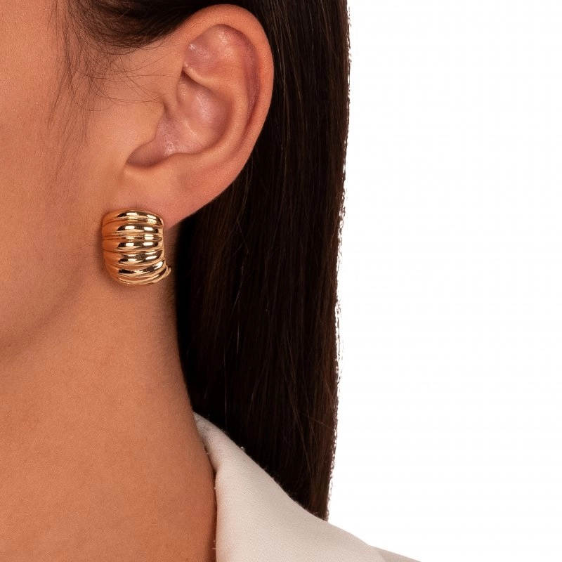 Semijoia Gazin- Brinco Detalhado Croissant Confeccionado em Banho de Ouro Amarelo de 18K e Ródio Branco.
