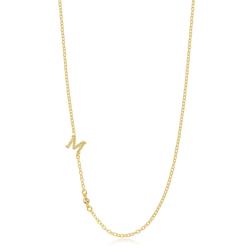 Semijoia Gazin- Colar Letra M Zircônia Confeccionado em Banho de Ouro 18K.