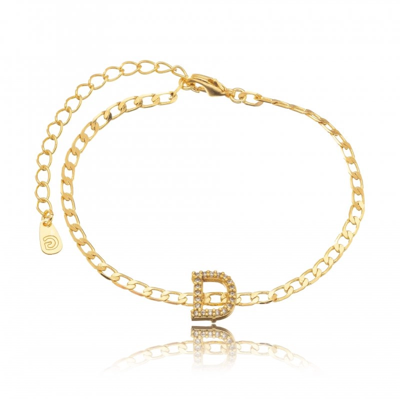 Semijoia Gazin- Pulseira Elos Letra D Confeccionada em Banho de Ouro Amarelo de 18K.