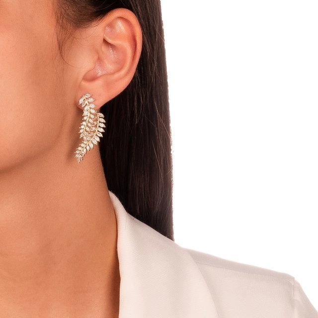 Semijoia Gazin- Brinco Ear Jacket Ramos Cristais Confeccionado em Banho de Ouro Amarelo de 18k.