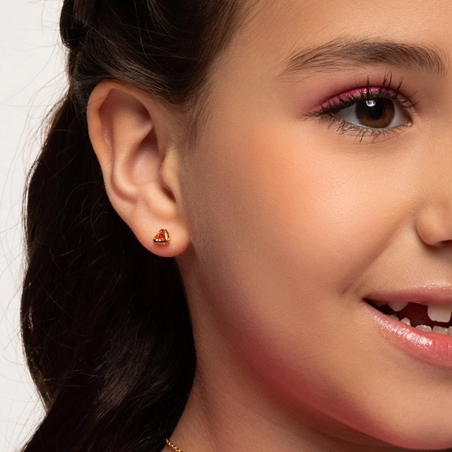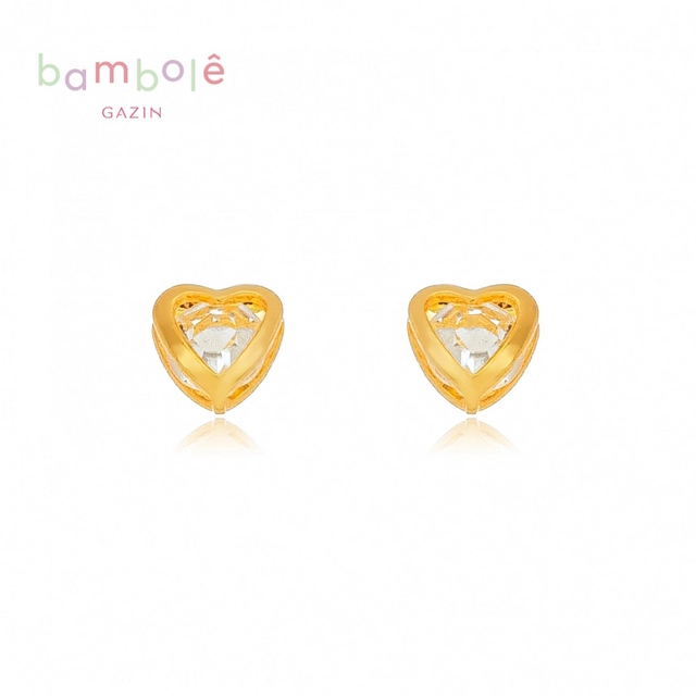 Semijoia Gazin- Brinco Infantil Coração Cristal Confeccionado em Banho de Ouro Amarelo de 18K.
