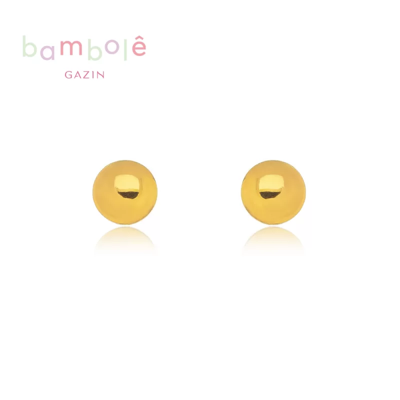 Semijoia Gazin- Brinco Infantil Meia Bola Confeccionado em Banho de Ouro Amarelo de 18K.