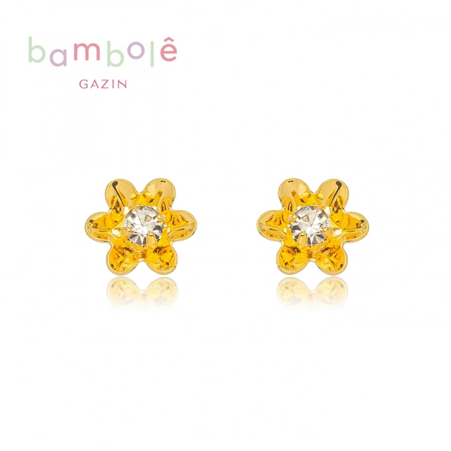 Semijoia Gazin- Brinco Infantil Flor Micro Zircônia Confeccionado em Banho de Ouro Amarelo de 18K.