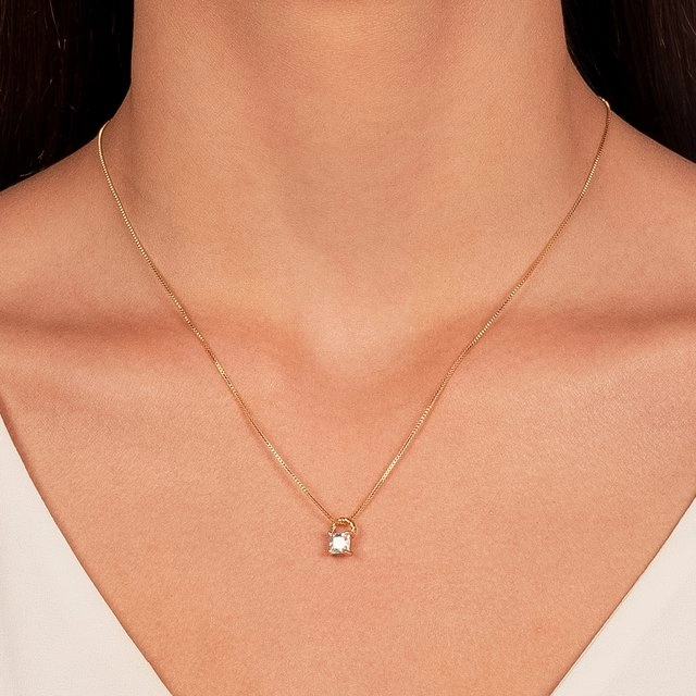 Semijoia Gazin- Pingente Quadrado Cristal Confeccionado em Banho de Ouro Amarelo de 18K.