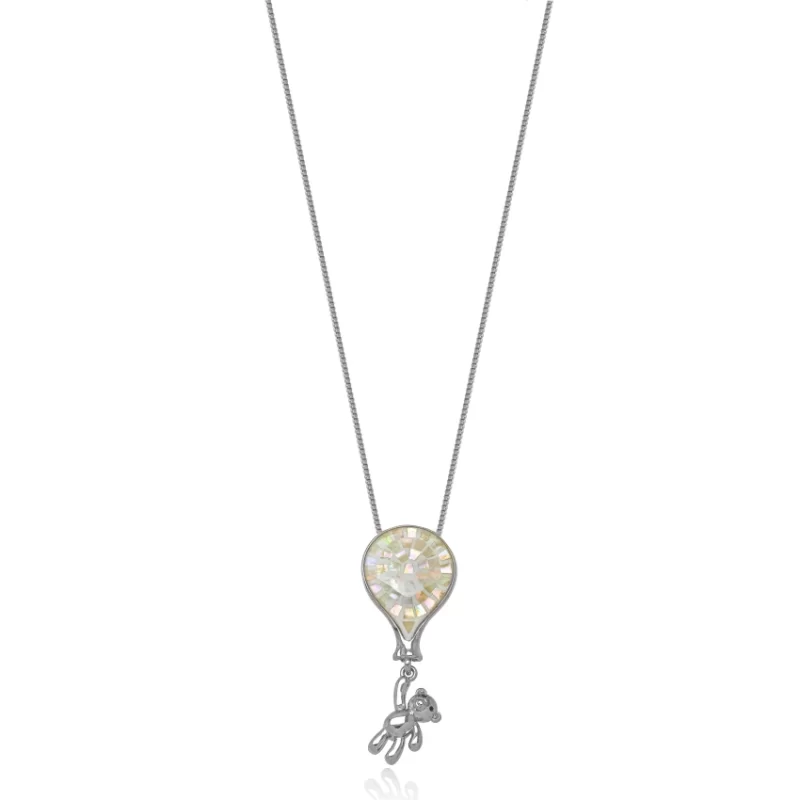 Semijoia Gazin - Colar Urso Madrepérola Confeccionado em Banho de Ródio Branco.