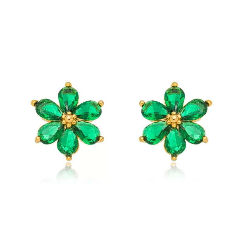 Semijoia Gazin - Brinco Flor Cristais Confeccionado em Banho de Ouro Amarelo de 18K.
