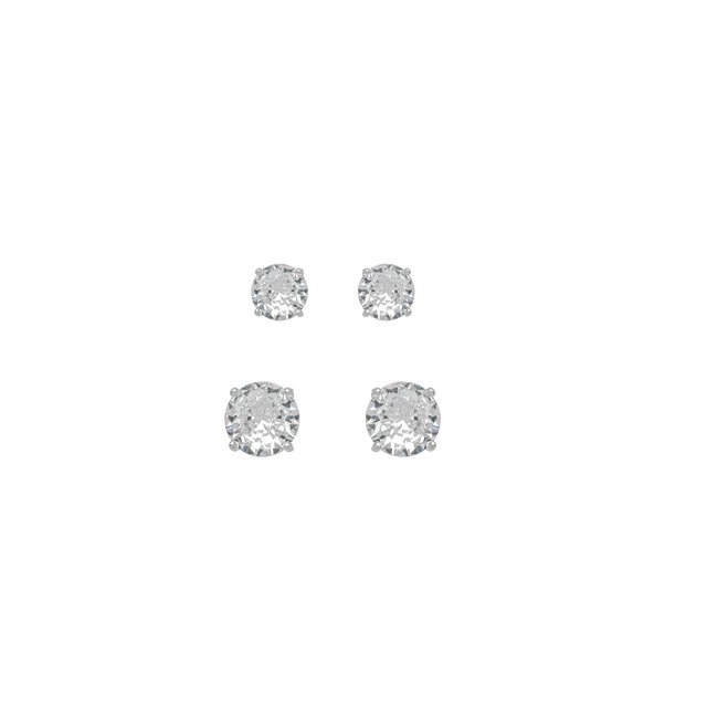 Brinco Duplo Ponto de Luz Zircônia Confeccionado em Prata 925.