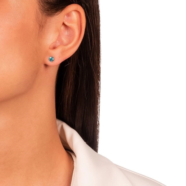 Semijoia Gazin- Brinco Ponto de Luz Cristal Azul Confeccionado em Banho de Ouro Amarelo de 18k.