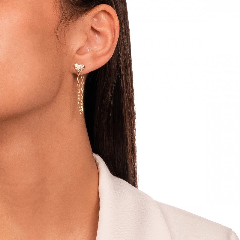 Semijoia Gazin- Brinco Ear Jacket Coração Corrente Confeccionado em Banho de Ouro Amarelo de 18k.