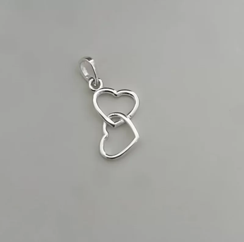 Joia- Pingente Dois Corações Vazados Lisos Confeccionado em Prata 925.