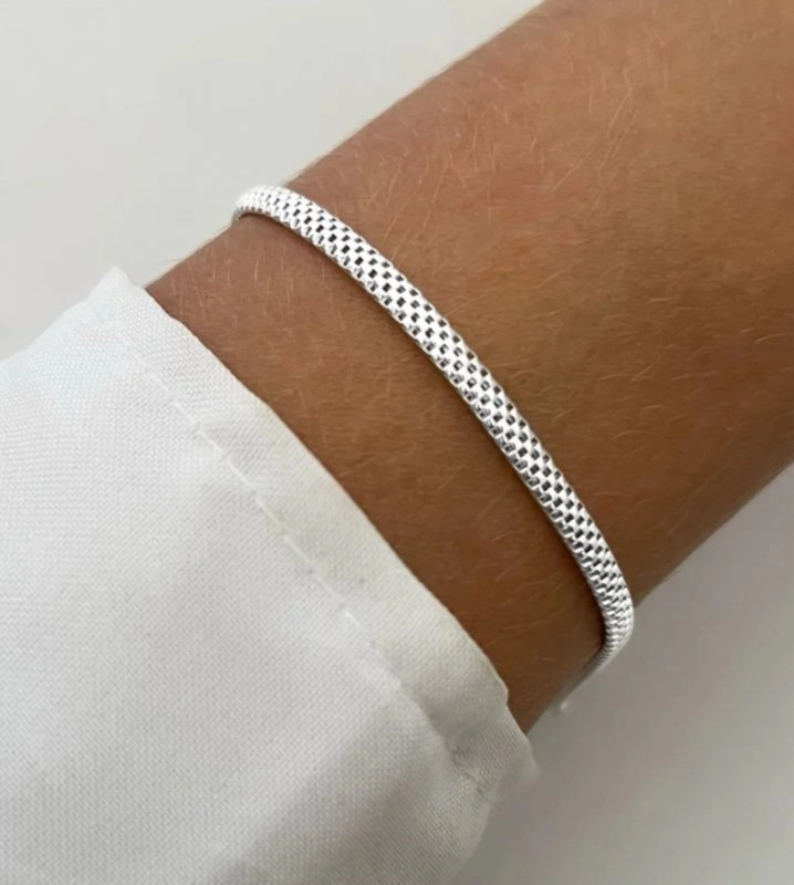 Joia- Pulseira Pipoca Achatada Fina 925 Confeccionada em Prata 925.