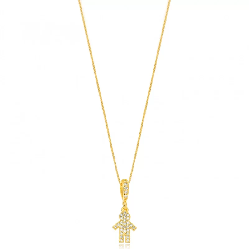 Colar Menino Cravejado Confeccionado em Banho de Ouro Amarelo de 18K.