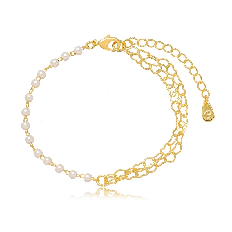 Semijoia Gazin - Pulseira Corações Vazados e Pérolas Confeccionado em Banho de Ouro Amarelo de 18K.