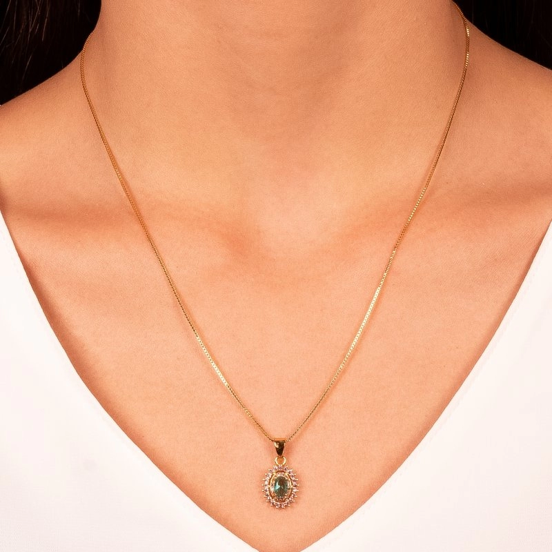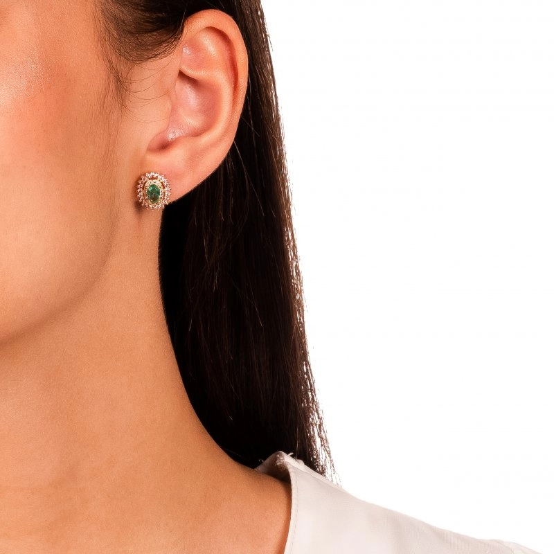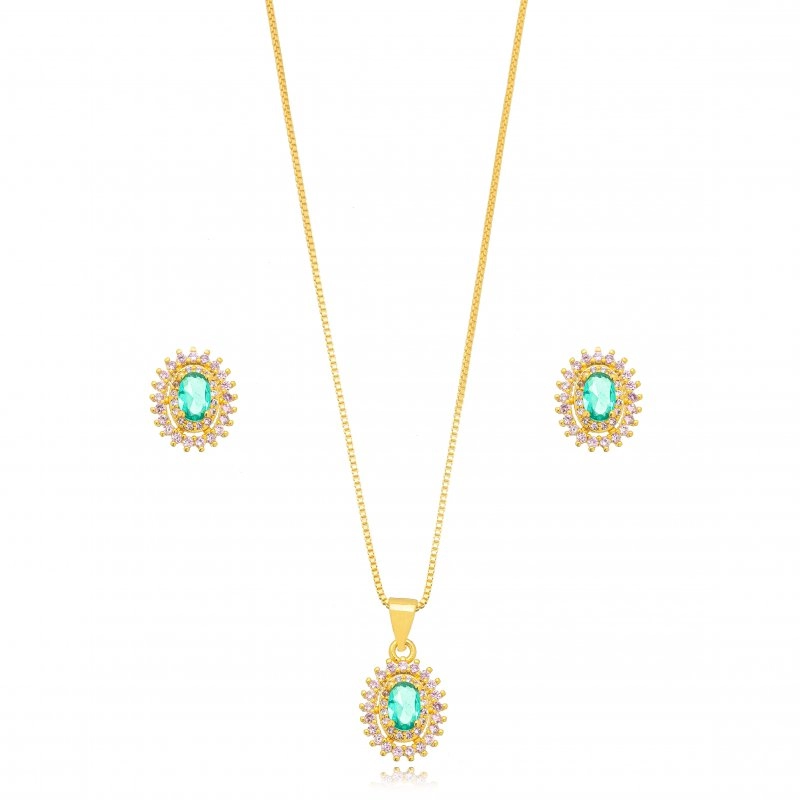 Semijoia Gazin - Conjunto Oval Cravejado Confeccionado em Banho Ouro Amarelo 18K e Ródio Branco.