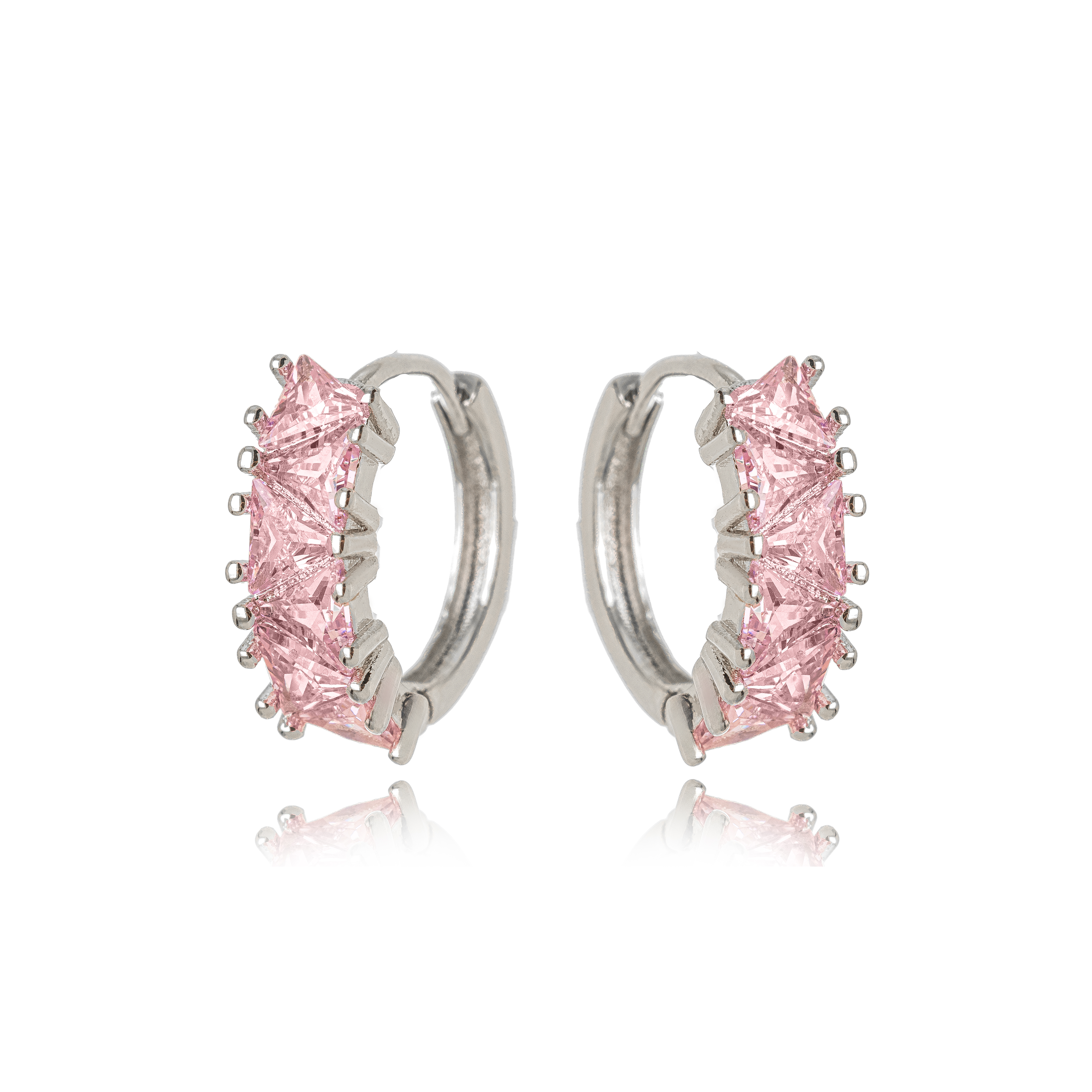 Brinco Argola Cristais Rosa Confeccionado em Banho de Ródio Branco.