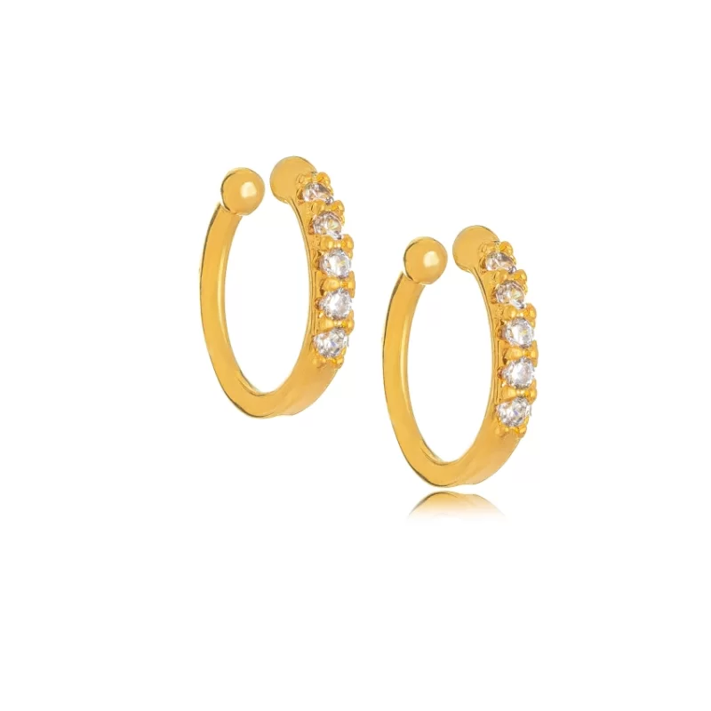 Piercing Duplo Micro Zircônia Confeccionado em Banho de Ouro Amarela 18K.